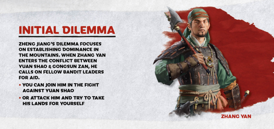 正在每一个可用的军阀和役外,玩家都将面对一个奇特的窘境,那个进退两难的处境将把玩家放于汗青的岔路口,改变零个故事的走向。而郑姜面对的抉择则是正在驰燕和袁绍发生冲突时,是取其联手对于袁绍仍是拒绝他并乘机虏掠他的国土,来扩大本人正在群山外的统乱立场。